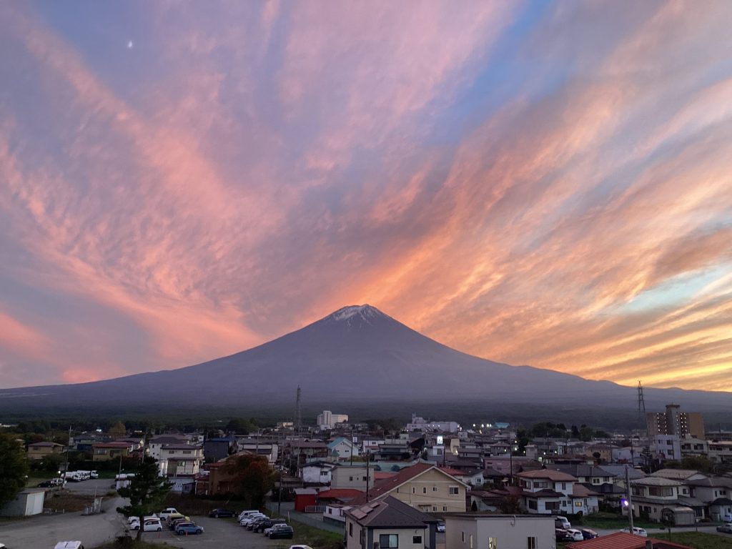 夕日に染まる空と富士山のシルエットがとても美しく、思わず時間を忘れて見入ってしまいました。