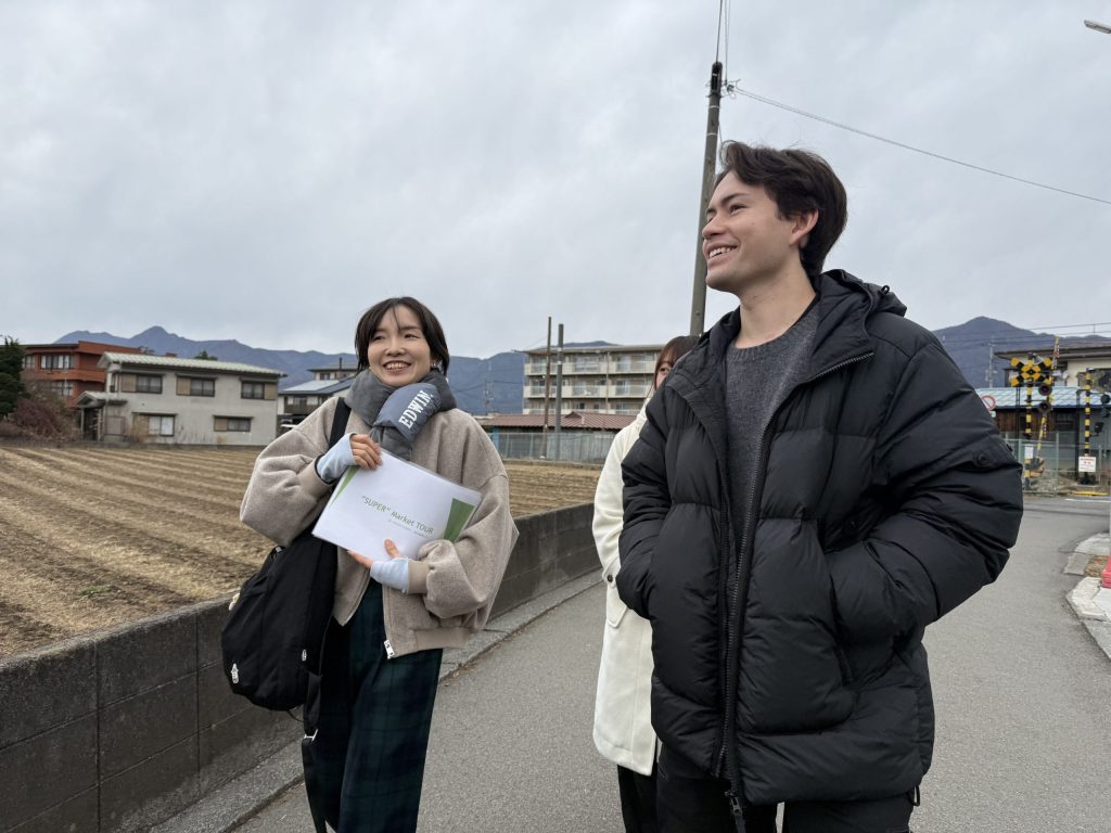 いよいよツアーへ出発。ツーリストベース河口湖からスーパーまでは約15分ほどかけて徒歩で向かいます。観光客で賑わう河口湖駅前から一歩足を踏み出すと、そこに広がるのは地元の人々が暮らす静かな日常の風景。まるで河口湖に住む友達と一緒に買い物に出かけているような気分を味わうことができます。
