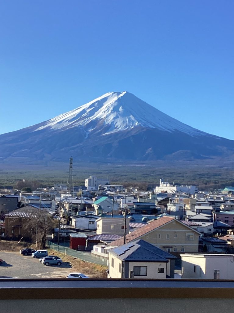 こんにちは!冬の河口湖といえば、澄んだ空気と雪化粧の富士山。