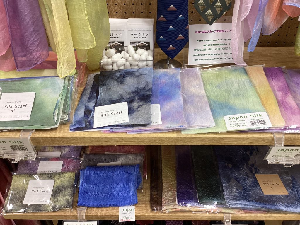 当店では、そんな甲州シルクを使った素敵な商品をお土産コーナーにて販売しています。